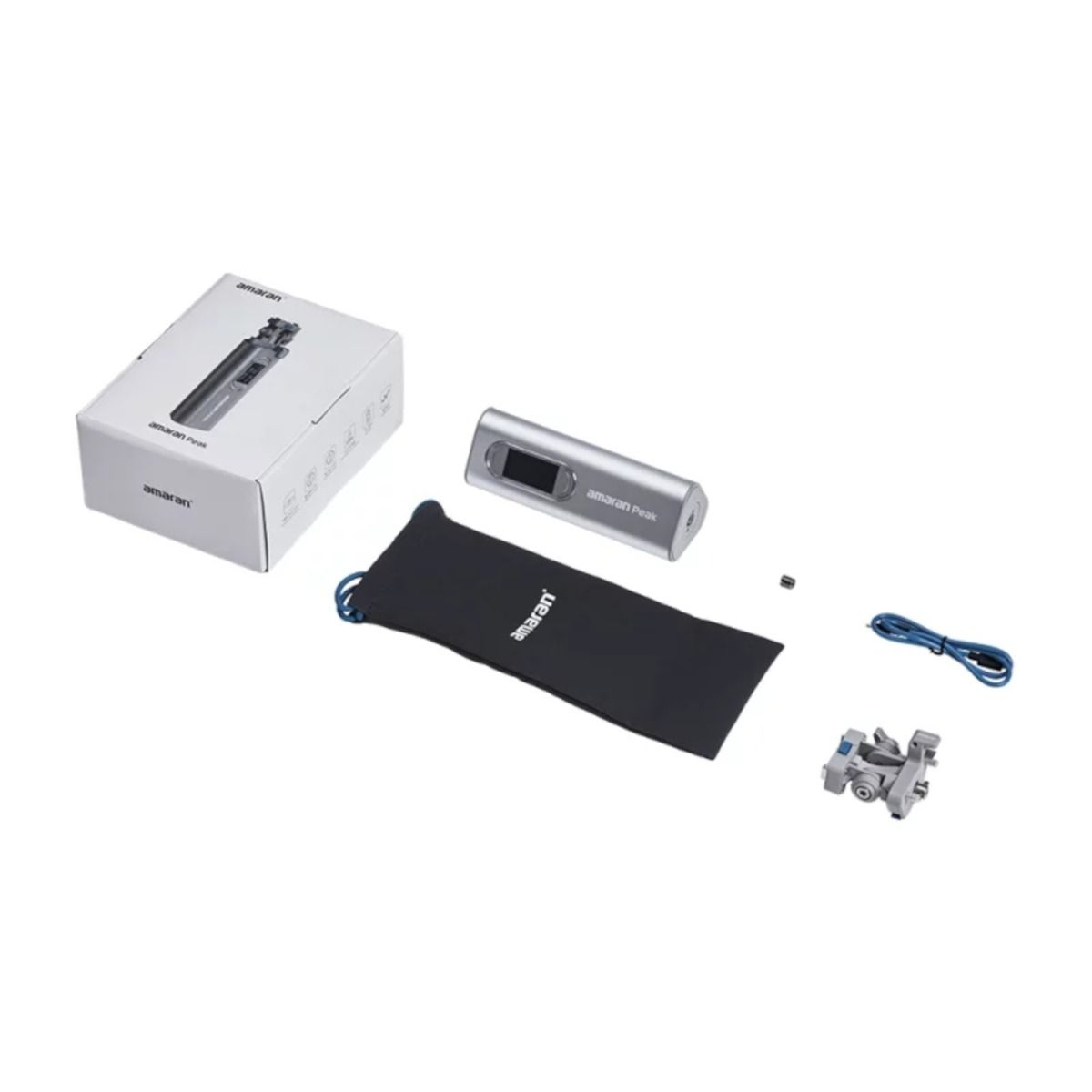 Der ergonomische Silikongriff sorgt für sicheren Halt, während sich der Akku werkzeuglos an 3/8-16-Zoll- oder 1/4-20-Zoll-Stative montieren lässt. Im Lieferumfang enthalten ist 1 × Amaran Peak. Die Herstellergarantie beträgt 24 Monate.