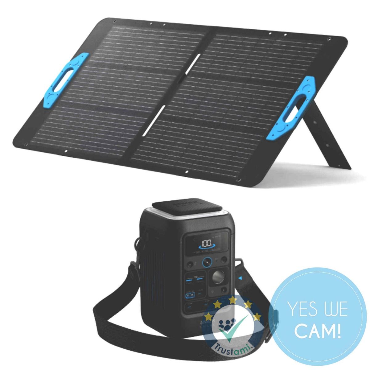 - Energiearchitektur: Kombination aus kompakter LiFePO₄-Powerstation und faltbarem 100-W-Solarmodul für mobile Stromversorgung