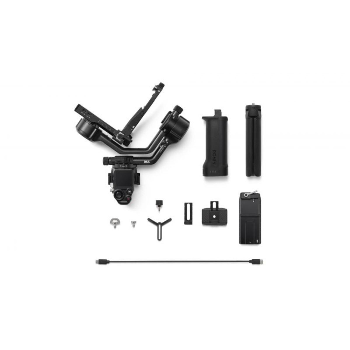 DJI RS 5 Kameragimbal mit montierter spiegelloser Kamera in freigestellter Produktansicht