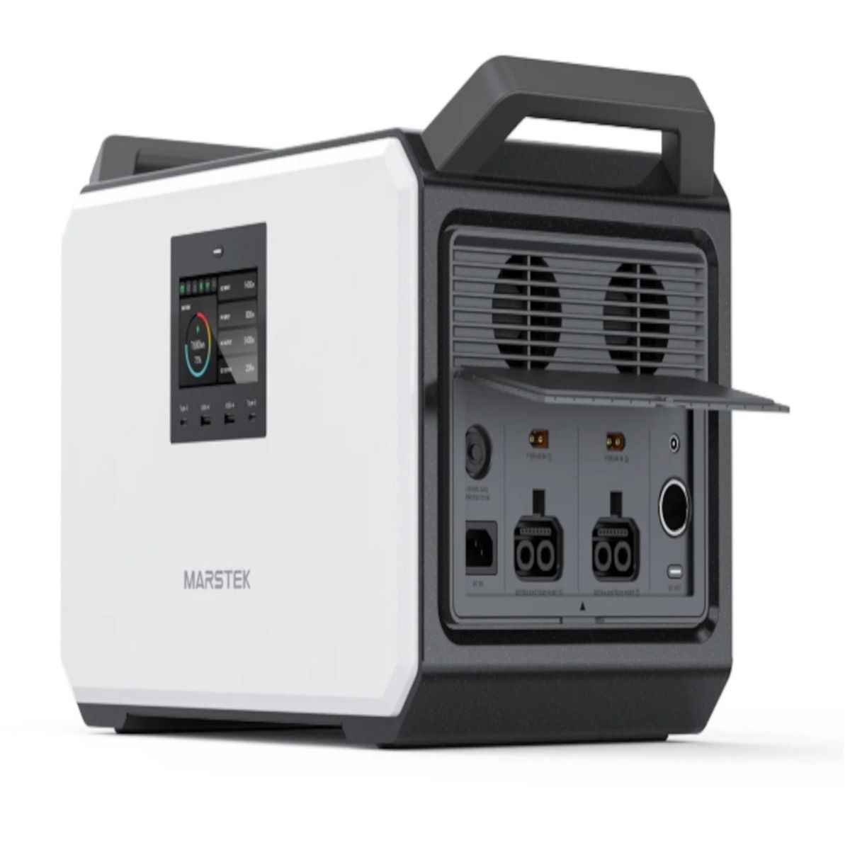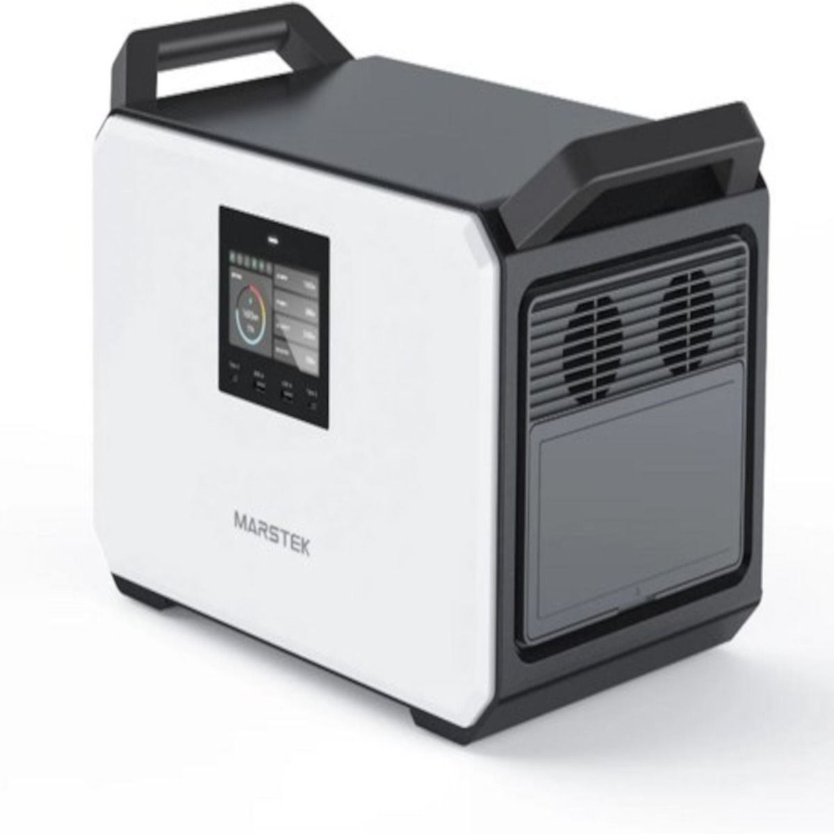 Dazu kommen Ladeanschlüsse wie USB‑C (100 W & 45 W), USB‑A (18 W), eine effektive USV‑Funktion (Umschaltzeit < 20 ms) und eine Steuerung via MARSTEK‑App über Bluetooth oder WLAN.